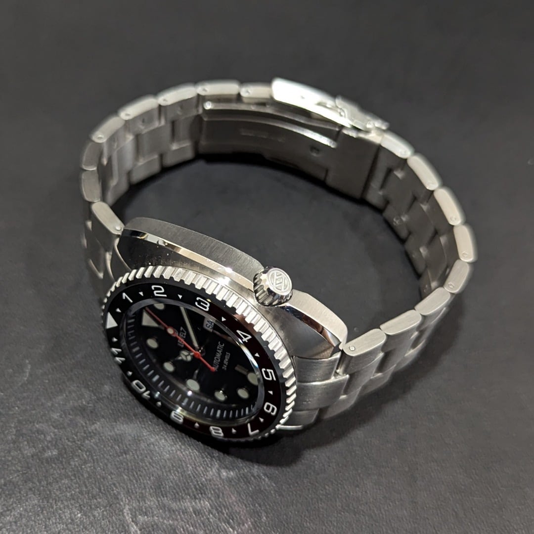 ケースには、酸化に強く、低アレルギーな金属、医療器具などに使用される316Lサージカルステンレス、風防は、傷に強い硬度9を誇るサファイアクリスタルを採用し、視野性を確保するため、ARコーティングを施したコダワリ。 耐水、防水性は、20気圧を確保。 蓄光(ベゼル、ハンズ、インデックス)には、薄暗い時、暗い時、どんな時でも、光を放ちあなたに時間を示してくれる発光度の高いルミナスを採用。 腕時計の心臓部でもあるムーブメントは、日本が誇るセイコーホールディングスの子会社、セイコーウォッチ(SII/TMI)の自動巻きムーブメント(NH36/NH36A)を採用しています。