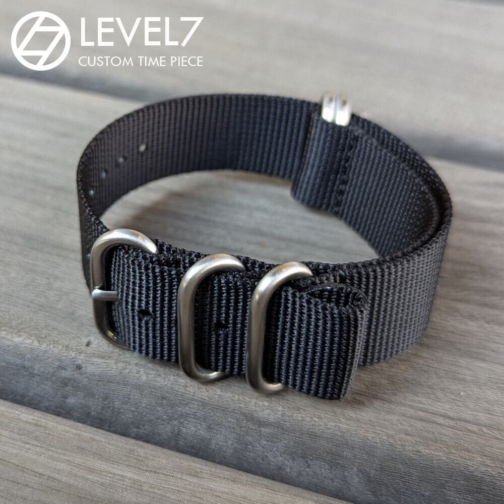 【ラグ幅:22mm】【6カラー】ZULU ナイロンベルト/ストラップ ブラック プレミアムナイロン使用 全長約280mm ブラッシュ シルバーリング LEVEL7