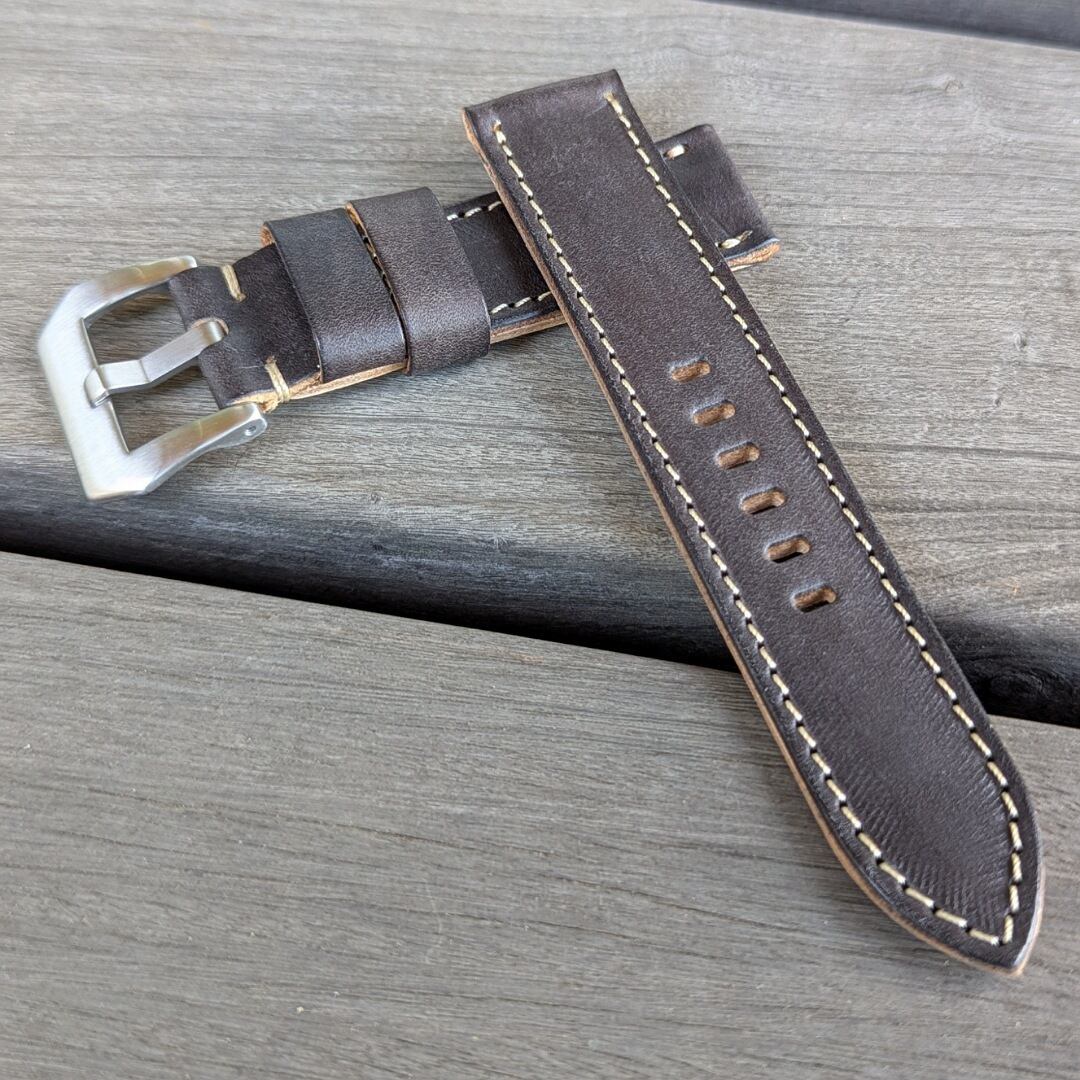【ラグ幅:20/22/24MM】【2P-AMZ-LBR】イタリア製 バケッタオイルレザー 茶芯ブラック ヌメ革を使用した ハンドメイドベルト 日本製 バックル付き 腕時計 替えベルト LEVEL7