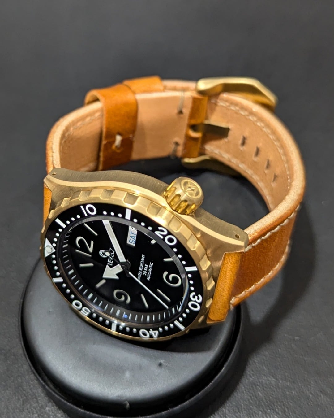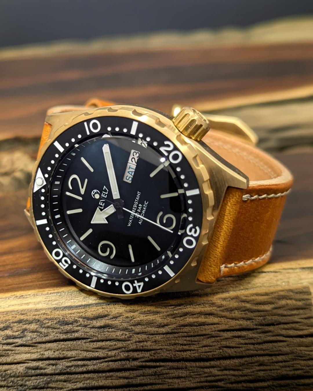 【LV1-BRASS】【ARFBK-2PW】 ブラスケース ブラックダイアル アラビア文字 20気圧防水 機械式/自動巻き SEIKO NH35 ムーブメント搭載 サファイアダブルドーム風防 メンズウォッチ LEVEL7