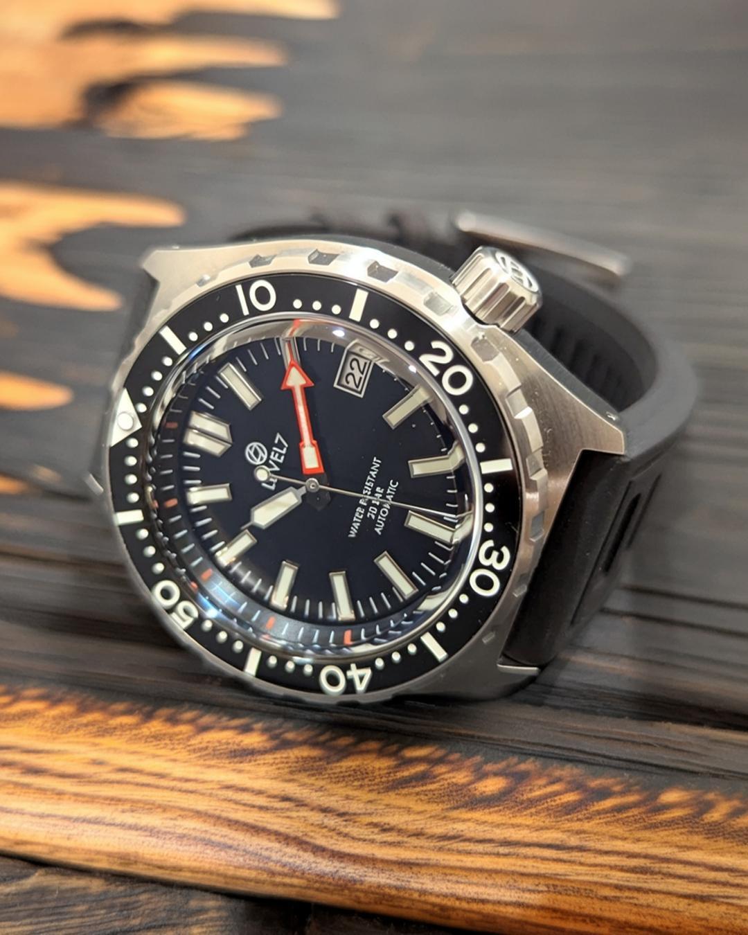 【LV1】【2NDFBK】 【トップハット G003】フラットベゼル 20気圧防水 機械式/自動巻き SEIKO TMI NH35 ムーブメント搭載 メンズウォッチ LV1-ver2 LEVEL7