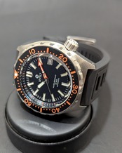 ver2ケースは、高気圧防水(50気圧)の耐水性を兼ね備え、飽和潜水用のヘリウムエスケープバルブを9時位置の側面部に装備した本格派のメンズウォッチになります。