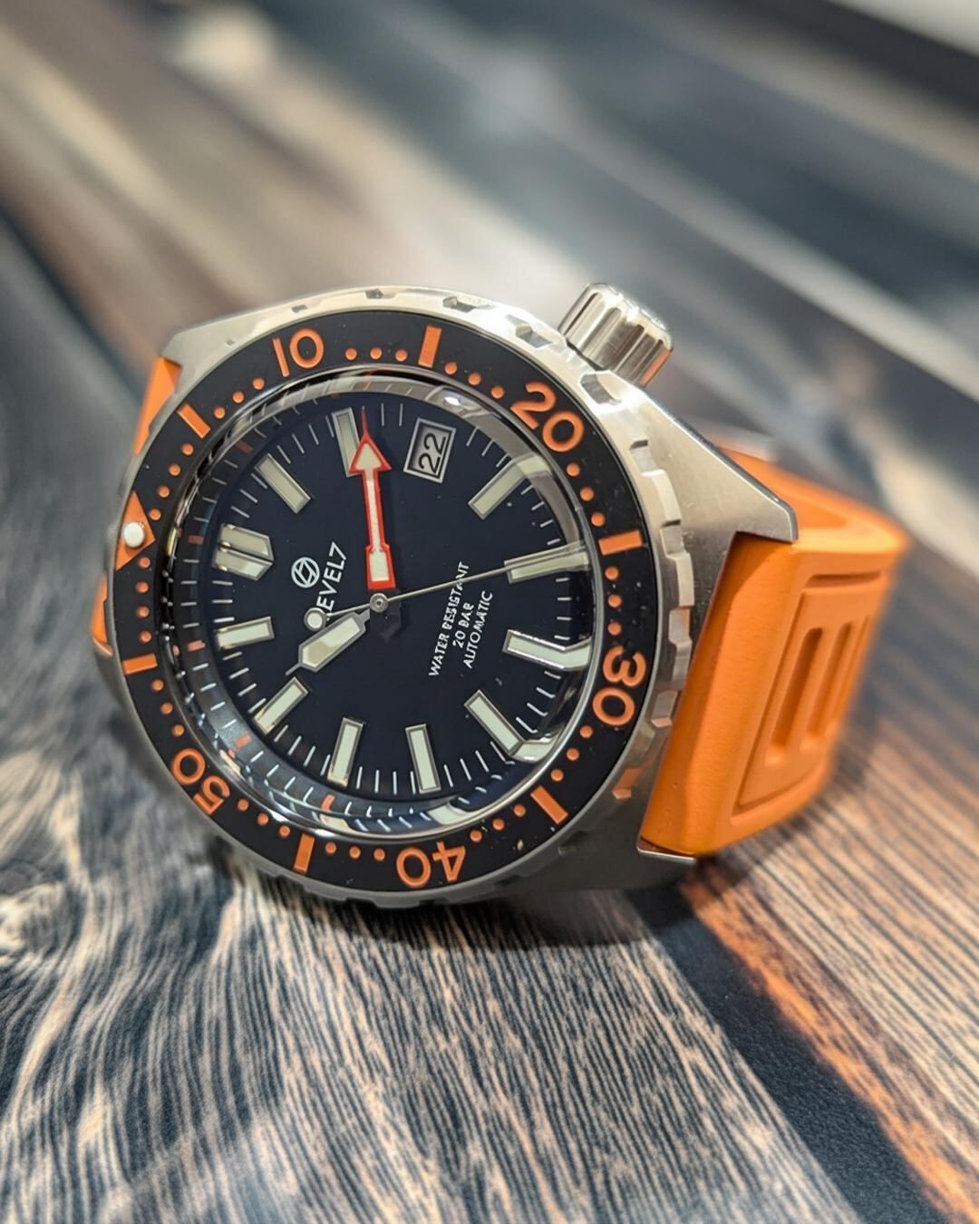 【LV1】【2NDFBKOR-3BK58OR】 【トップハット G003】フラットベゼル 20気圧防水 機械式/自動巻き SEIKO TMI NH35 ムーブメント搭載 メンズウォッチ LV1-ver2 LEVEL7