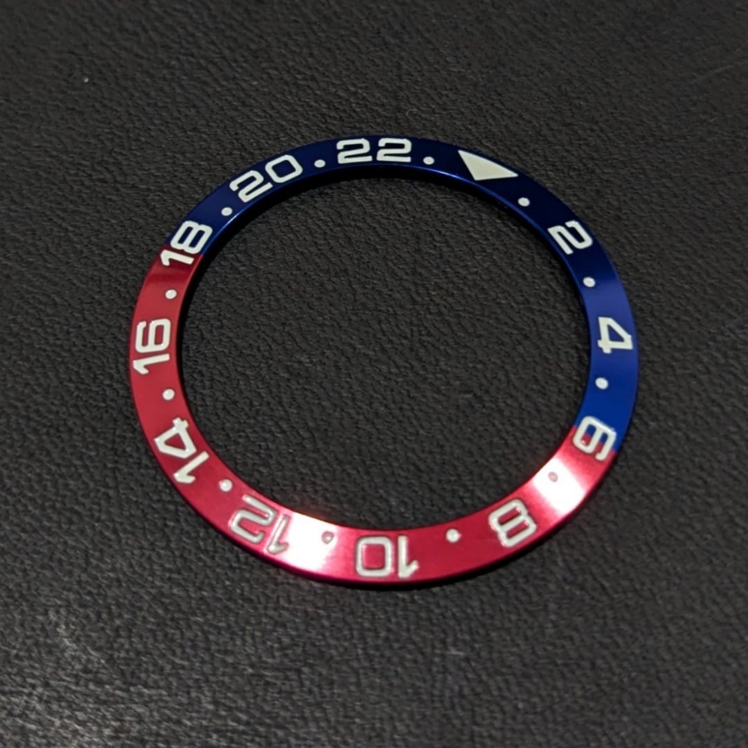【スロープ型】【LVKC001】【ルミナス/蓄光】ベゼルインサート アルミ製 24H表記 PEPSI/ペプシカラー レッド×ブルー インデックス MOD カスタム用パーツ LEVEL7