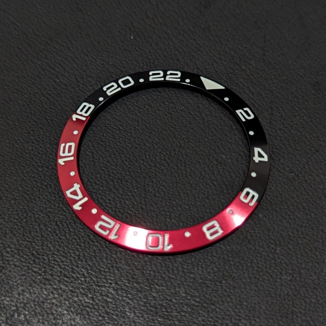 【スロープ型】【LVKC002】【ルミナス/蓄光】ベゼルインサート アルミ製 24H表記 COKE/コーラカラー レッド×ブラック MOD カスタム用パーツ LEVEL7