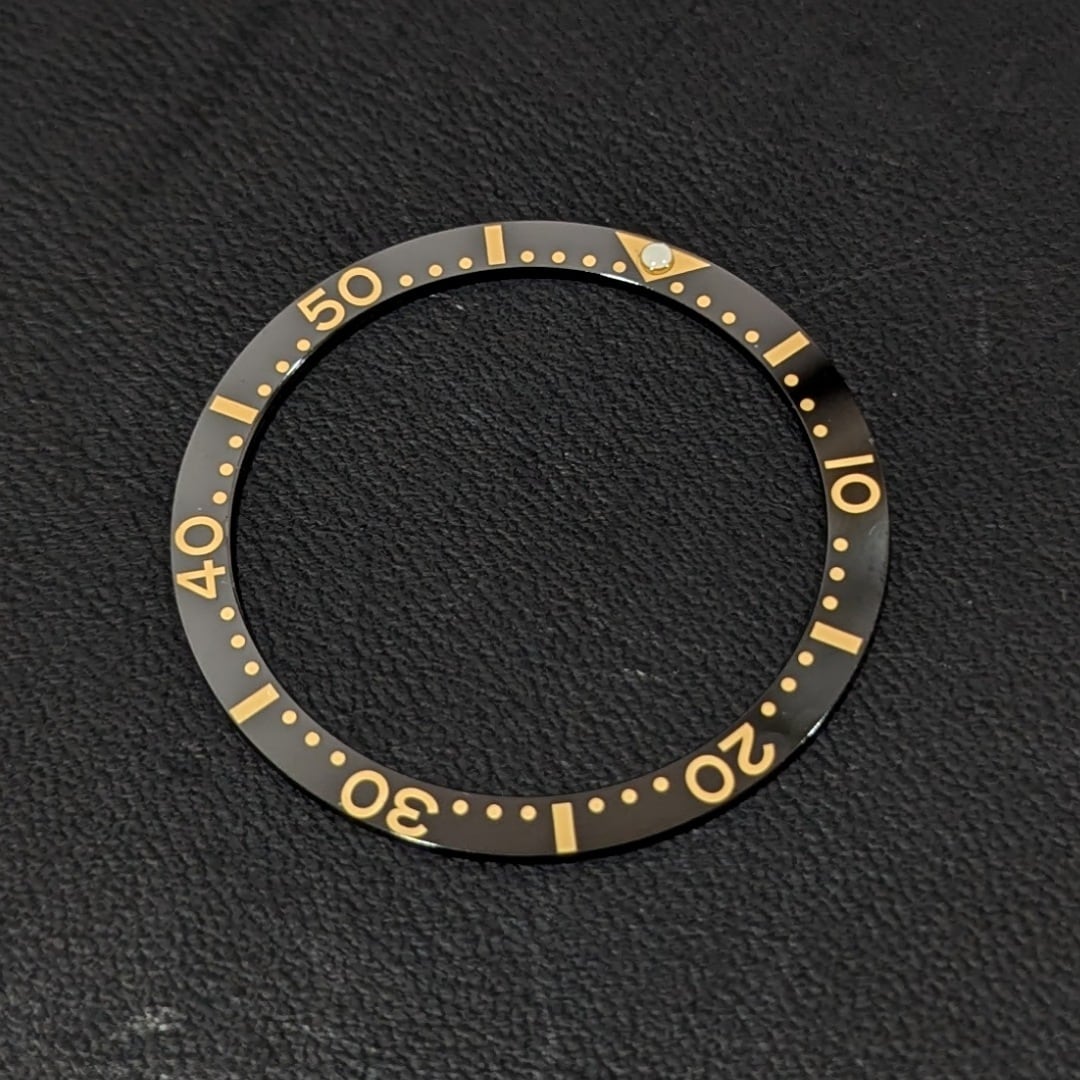 【フラット型】【LVCF011】ベゼルインサート カウントアップ表記 ブラック×ゴールド ルミナスドット セラミック製 直径約38mm カスタム用パーツ LEVEL7(SEIKO MODパーツとしても使用可)