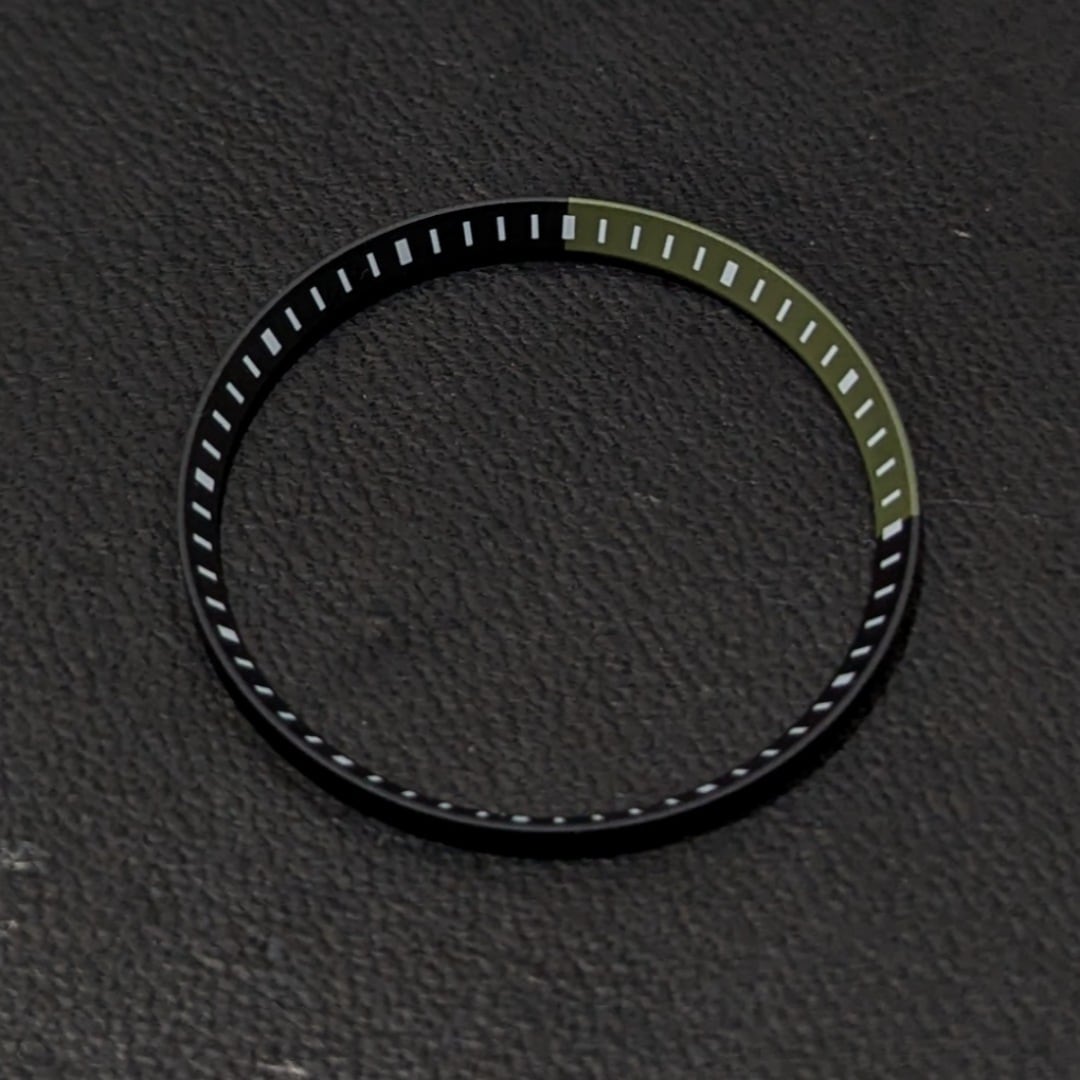 LEVEL7のオリジナルウォッチ(Custom Time Piece)、また、SEIKO 7s26-0020を継承するSKX007/009などに対応した対応したチャプターリング。マットブラック×1/4グリーン、ホワイトインデックスデザイン。シーンに合わせ、簡単に自分だけの個性ある腕時計に簡単にカスタマイズ出来ます。