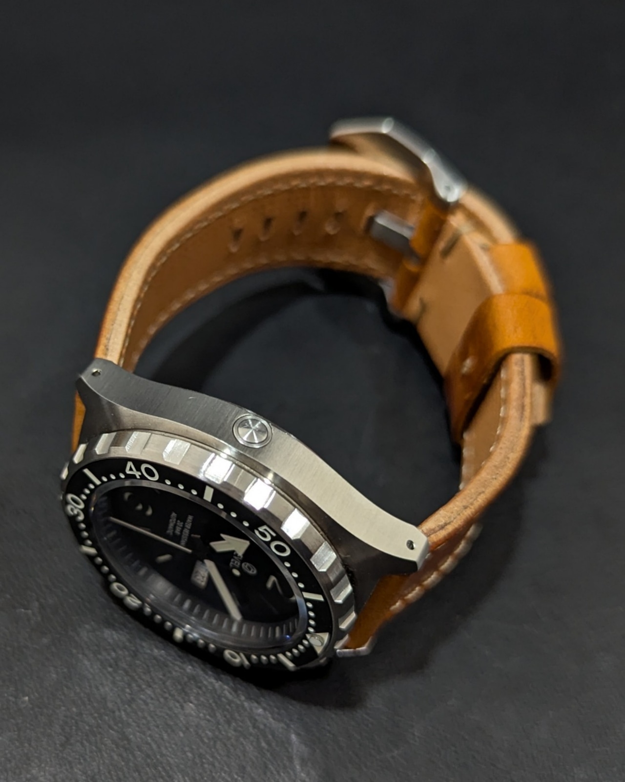 ver2ケースは、高気圧防水(50気圧)の耐水性を兼ね備え、飽和潜水用のヘリウムエスケープバルブを9時位置の側面部に装備した本格派のメンズウォッチになります。