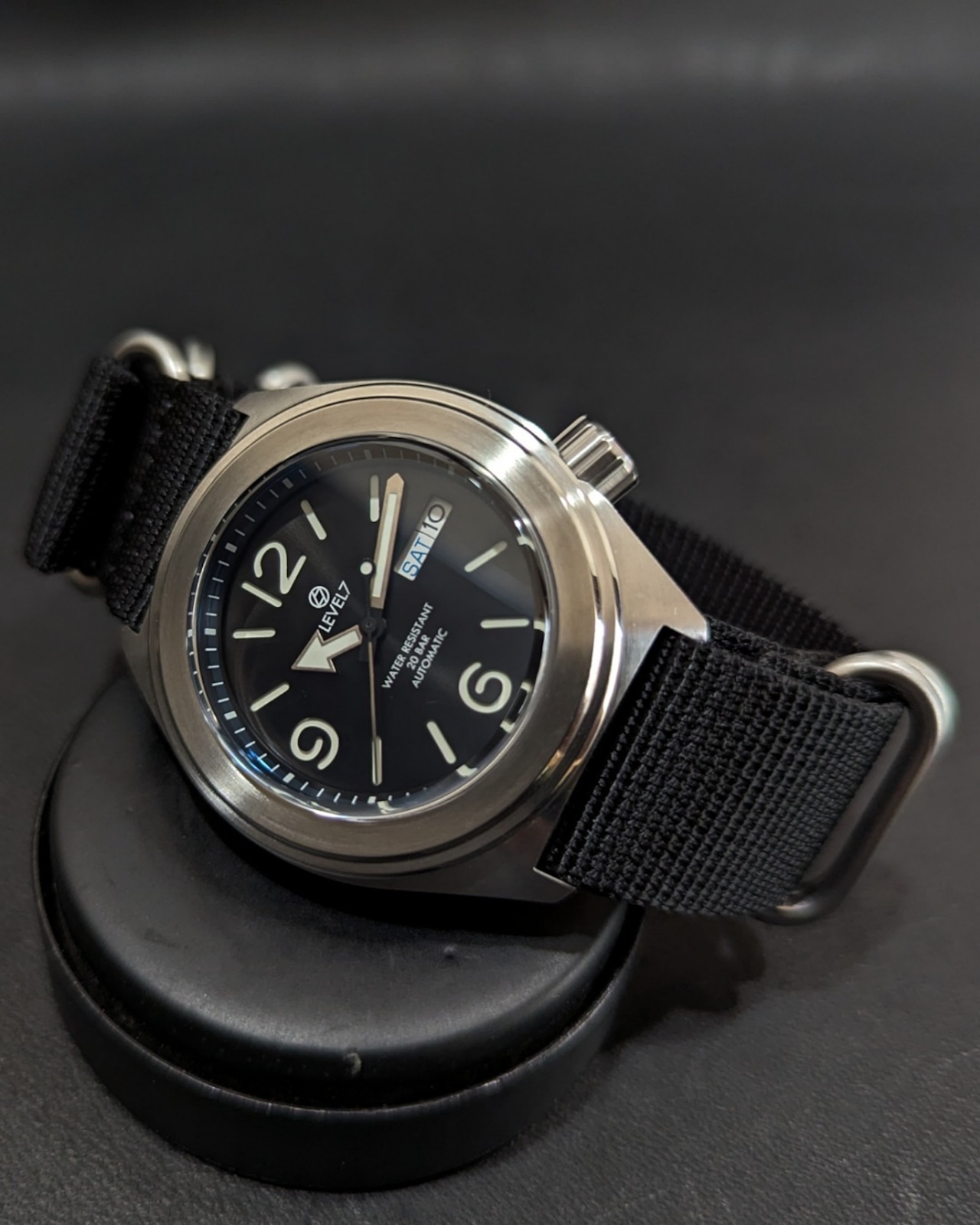 【LV1】【ARFBK-3FIXE22】【G003/トップハット風防】【固定ベゼル】 ブラックダイアル アラビア数字 20気圧防水 機械式/自動巻き SEIKO NH36A ムーブメント搭載 メンズウォッチ LEVEL7