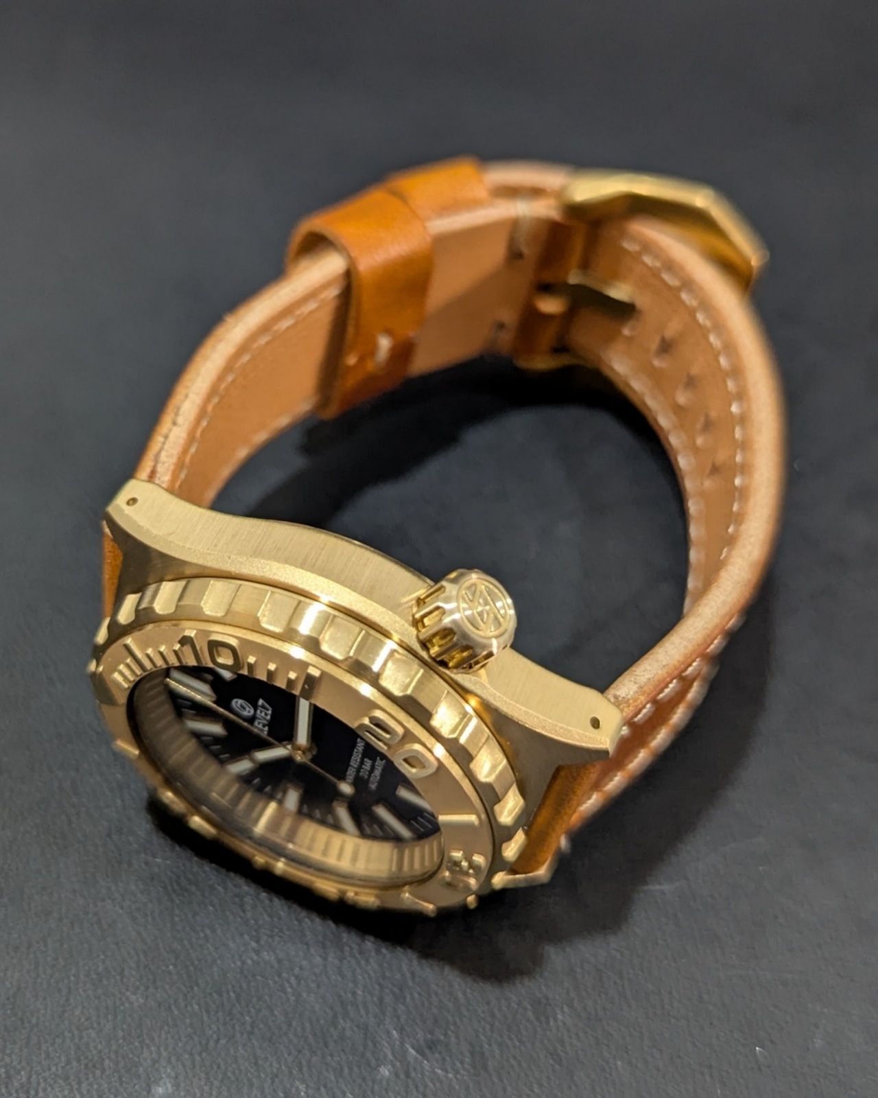 LV1-BRASSケースは、高気圧防水(20気圧)の耐水性を兼ね備えた本格派のメンズウォッチケースになります。