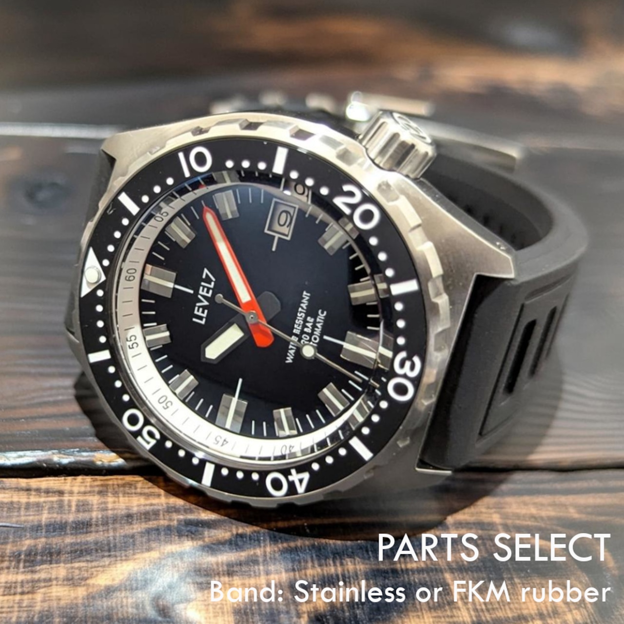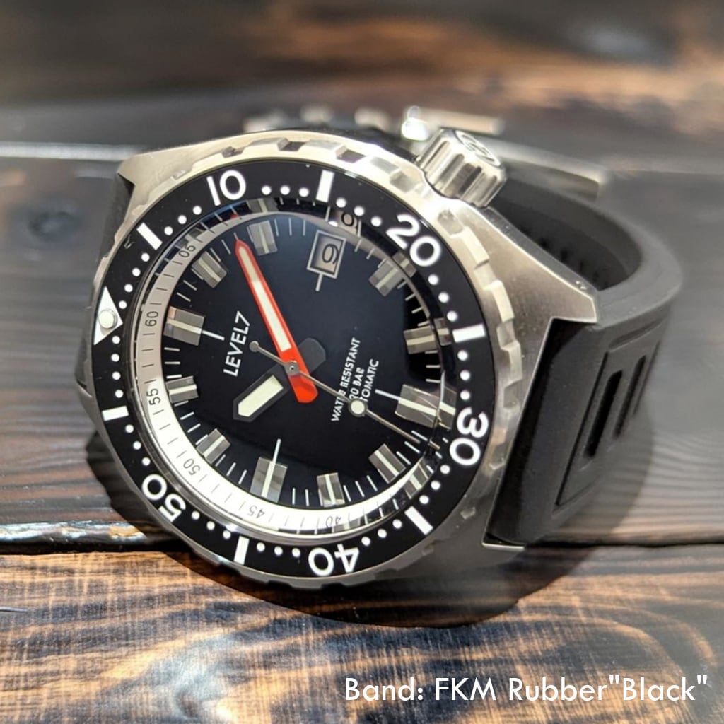 ベルトには、FKMラバー、LV1専用オイスターブレスレットの2種類をチョイスしました。