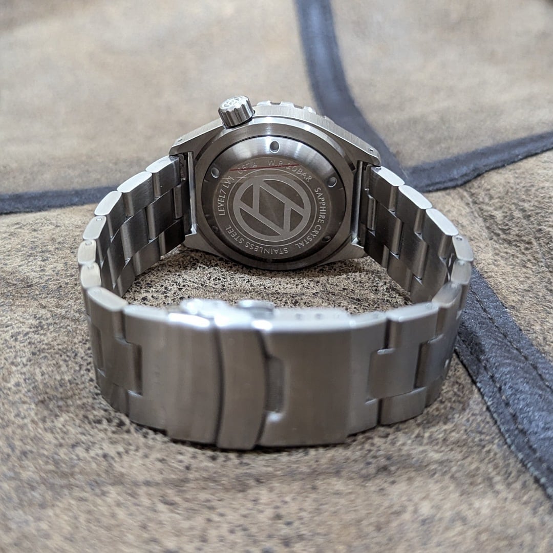 ケースには、酸化に強く、低アレルギーな金属、医療器具などに使用される316Lサージカルステンレス、風防は、傷に強い硬度9を誇るサファイアクリスタルを採用し、視野性を確保するため、ARコーティングを施したコダワリ。 耐水、防水性は、20気圧を確保。 蓄光(ベゼル、ハンズ、インデックス)には、薄暗い時、暗い時、どんな時でも、光を放ちあなたに時間を示してくれる発光度の高いルミナスを採用。 腕時計の心臓部でもあるムーブメントは、日本が誇るセイコーホールディングスの子会社、セイコーウォッチ(SII/TMI)の自動巻きムーブメント(NH36/NH36A)を採用しています。