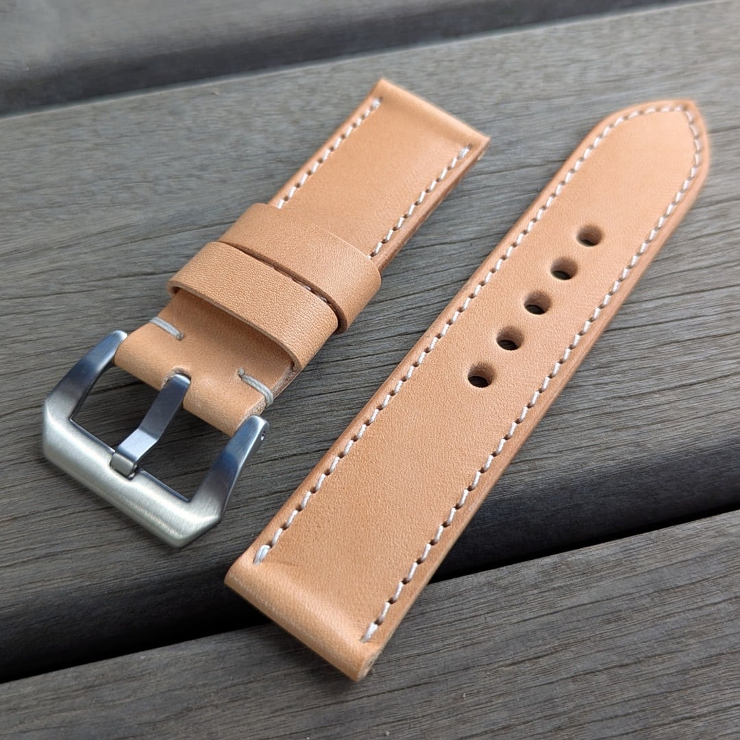 【ラグ幅:20/22/24MM】【2P-NAS-2】【子穴:円形】生成りのヌメ革に加脂したオイルレザー ナチュラル ハンドメイド 日本製 バックル付き 腕時計 替えベルト LEVEL7