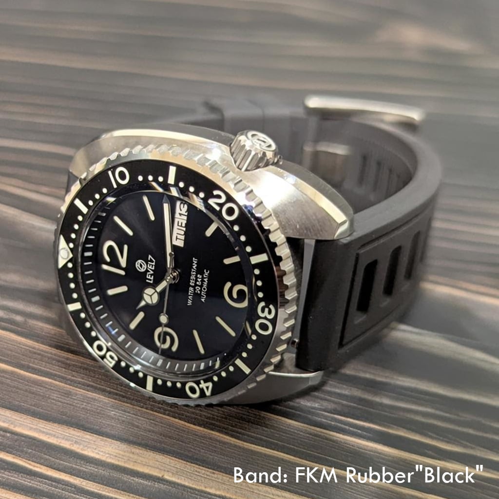 ベルトには、ケースと一体化する専用ステンレスベルト(LV-OYSTER)、厚手の高品質FKMラバーを使用したレトロダイバーラバーベルトの2種類を!