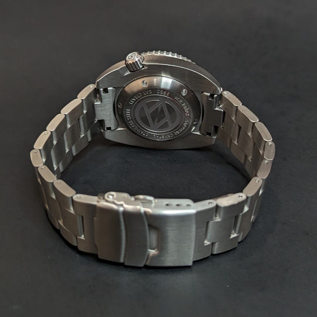 LV1-ver2同様、高気圧防水(50気圧)の耐水性を兼ね備え、飽和潜水用のヘリウムエスケープバルブを9時位置の側面部に装備した本格派のメンズウォッチになります。
