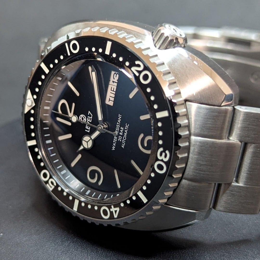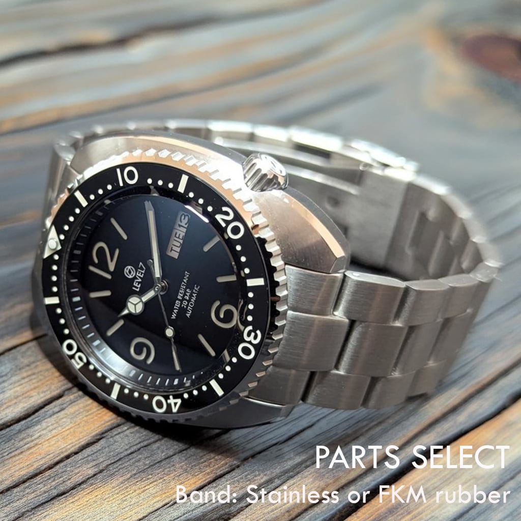 【LV2】【ARFBK60】【G001/ダブルドーム】 20気圧防水 機械式/自動巻き SEIKO NH36A ムーブメント搭載 サファイアクリスタル 無垢ステンレスバンド メンズウォッチ LEVEL7