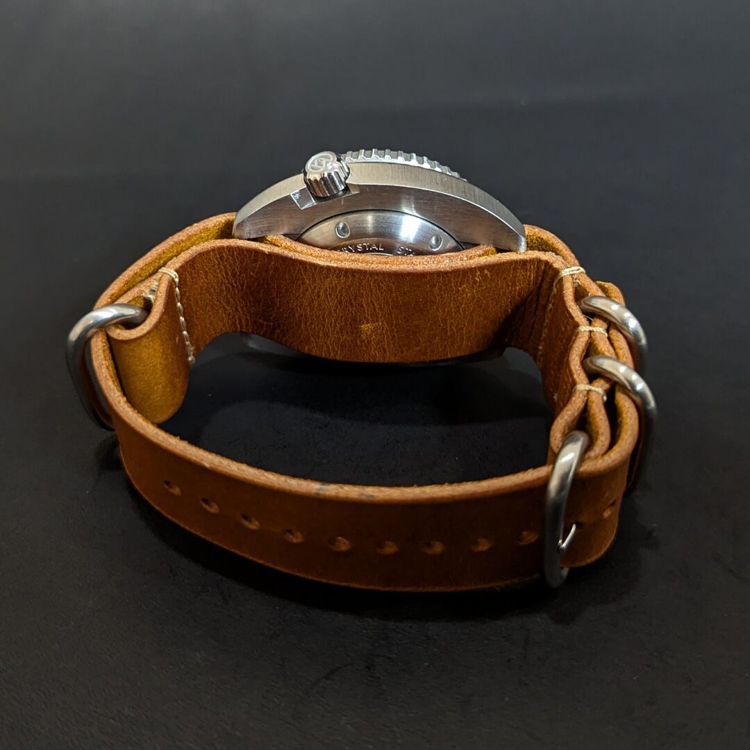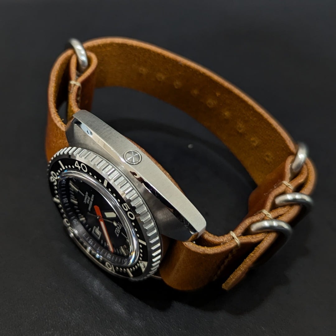 ケースには、酸化に強く、低アレルギーな金属、医療器具などに使用される316Lサージカルステンレス、風防は、傷に強い硬度9を誇るサファイアクリスタルを採用し、視野性を確保するため、ARコーティングを施したコダワリ。 耐水、防水性は、20気圧を確保。 蓄光(ベゼル、ハンズ、インデックス)には、薄暗い時、暗い時、どんな時でも、光を放ちあなたに時間を示してくれる発光度の高いルミナスを採用。 腕時計の心臓部でもあるムーブメントは、日本が誇るセイコーホールディングスの子会社、セイコーウォッチ(SII/TMI)の自動巻きムーブメント(NH36/NH36A)を採用しています。