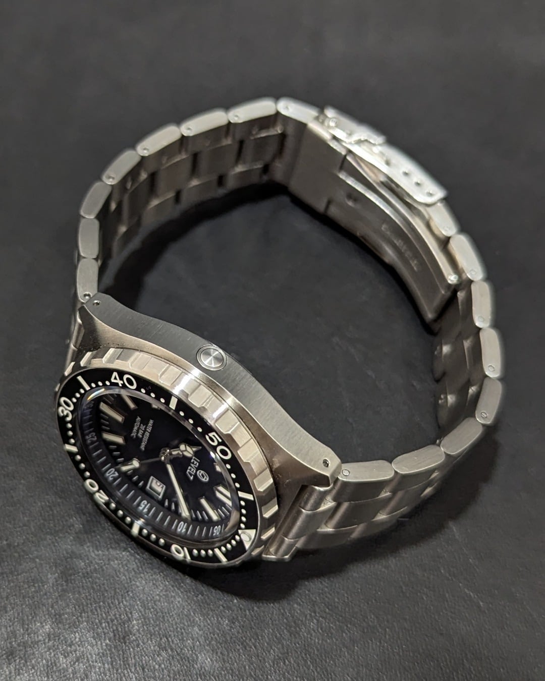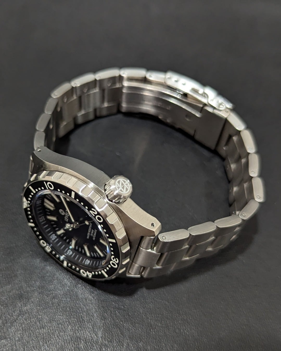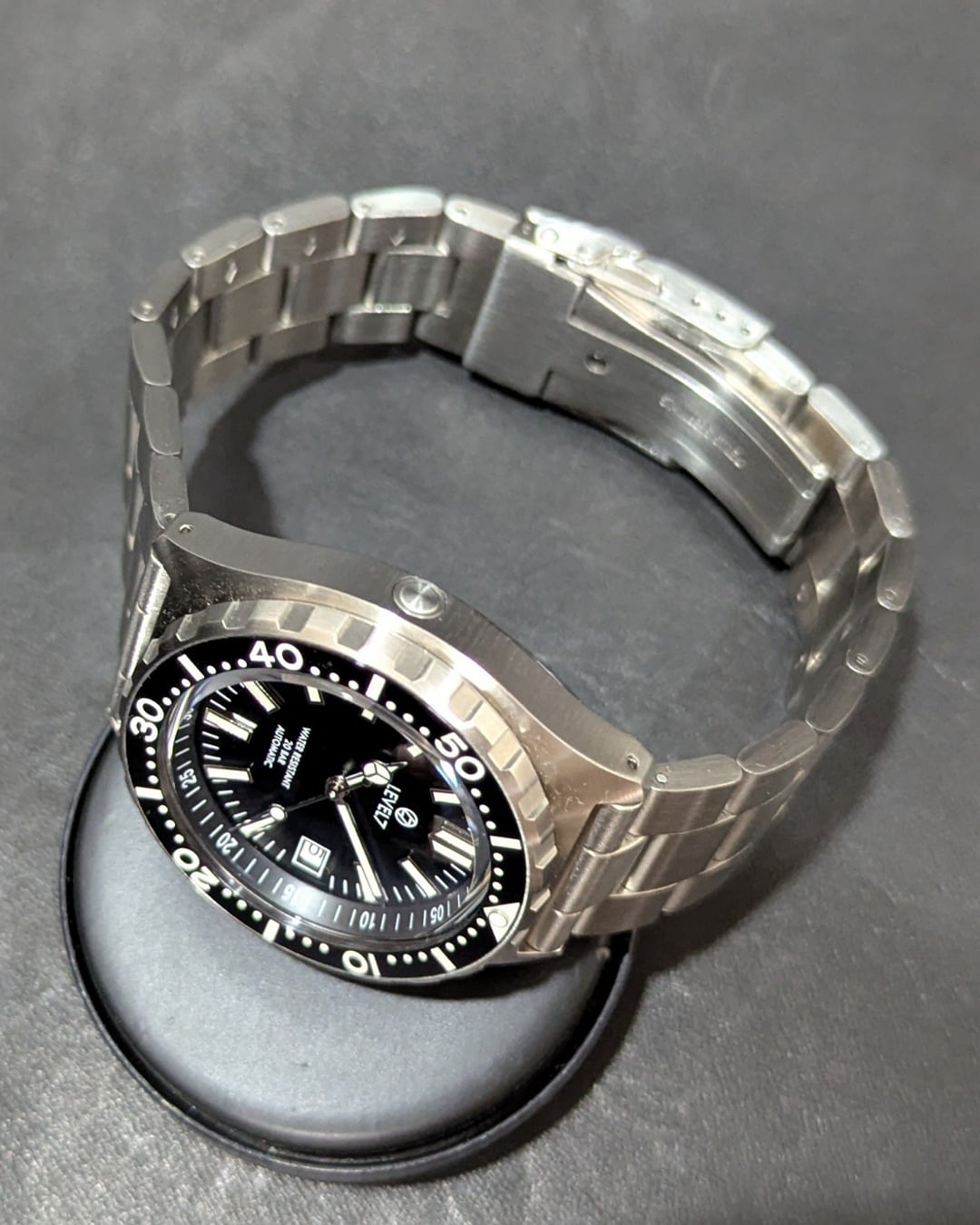 ケースには、酸化に強く、低アレルギーな金属、医療器具などに使用される316Lサージカルステンレス、風防は、傷に強い硬度9を誇るサファイアクリスタルを採用し、視野性を確保するため、ARコーティングを施したコダワリ。 耐水、防水性は、20気圧を確保。 蓄光(ベゼル、ハンズ、インデックス)には、薄暗い時、暗い時、どんな時でも、光を放ちあなたに時間を示してくれる発光度の高いルミナスを採用。 腕時計の心臓部でもあるムーブメントは、日本が誇るセイコーホールディングスの子会社、セイコーウォッチ(SII/TMI)の自動巻きムーブメント(NH36/NH36A)を採用しています。