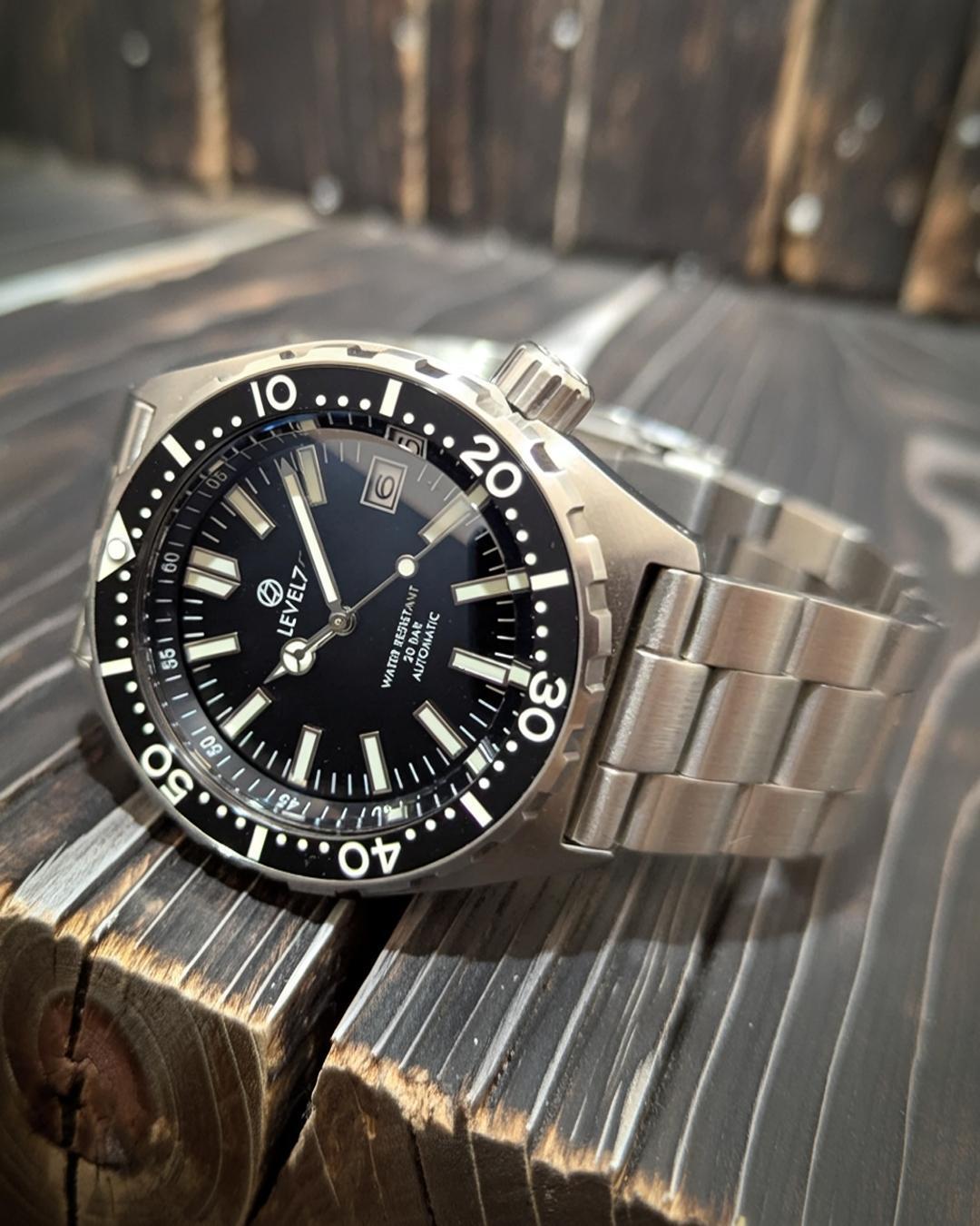 ★フルカスタム★【LV1】【2NDFBKAR-3BK】 フラットベゼル 20気圧防水 機械式/自動巻き SEIKO TMI NH35 ムーブメント搭載 メンズウォッチ LV1 LEVEL7