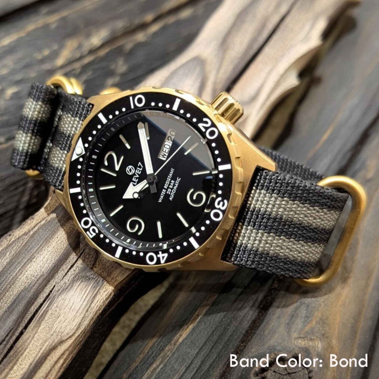 ★フルカスタム★【LV1-BRASS】【ARFBK-Z】 ブラスケース ブラックダイアル アラビア文字 20気圧防水 機械式/自動巻き サファイア風防 メンズウォッチ LEVEL7