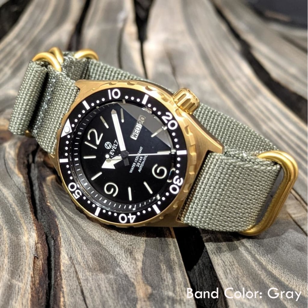 ケースには、酸化に強く、低アレルギーな金属、医療器具などに使用される316Lサージカルステンレス、風防は、傷に強い硬度9を誇るサファイアクリスタルを採用し、視野性を確保するため、ARコーティングを施したコダワリ。 耐水、防水性は、20気圧を確保。 蓄光(ベゼル、ハンズ、インデックス)には、薄暗い時、暗い時、どんな時でも、光を放ちあなたに時間を示してくれる発光度の高いルミナスを採用。 腕時計の心臓部でもあるムーブメントは、日本が誇るセイコーホールディングスの子会社、セイコーウォッチ(SII/TMI)の自動巻きムーブメント(NH36/NH36A)を採用しています。