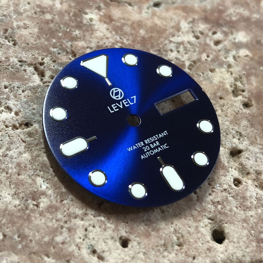 【ダイアル】 サンレイブルー ルミナス C1 グリーン蓄光 文字盤 直径28.5mm リューズ3時、3.8時位置対応カスタム用パーツ LEVEL7(SEIKO MODパーツとしても使用可)