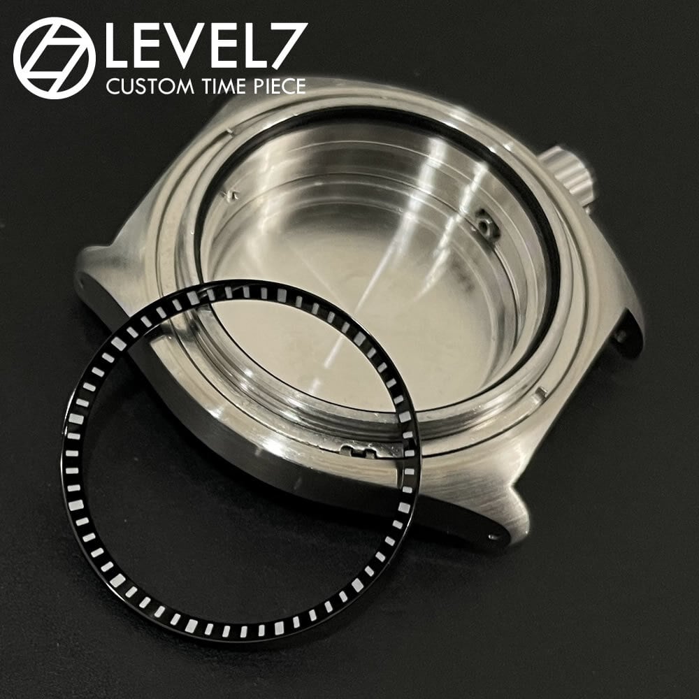 LEVEL7のオリジナルウォッチ(Custom Time Piece)、SEIKO 7s26-0020を継承するSKX007/009などに対応したチャプターリング。艶ありブラックにルミナスC1(グリーンに発光)インデックスのゴージャスな仕様! 暗闇でも視野性バッチリの個性派パーツ