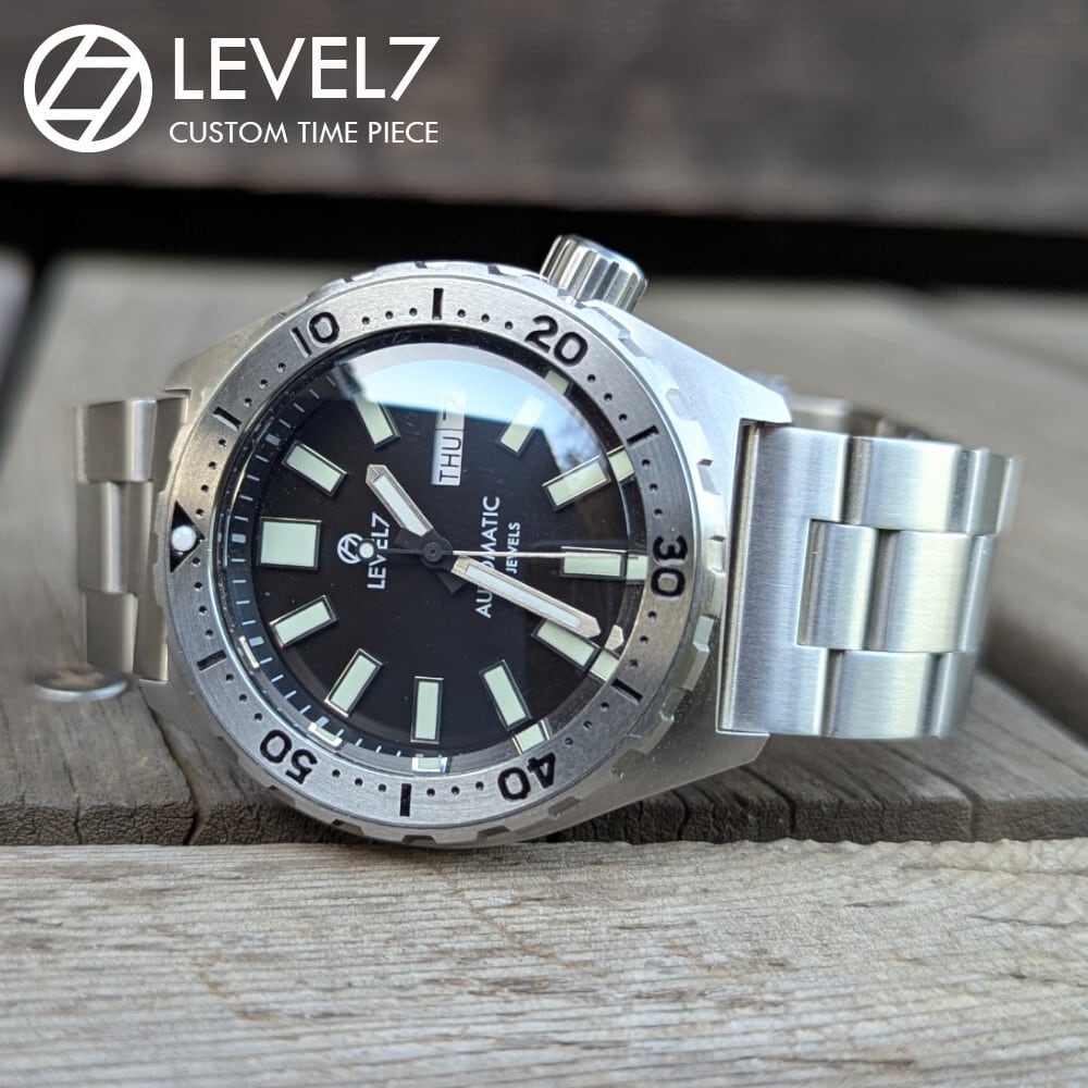 【LV1】【1STFBK2-SBK】 ブラック×シルバー 20気圧防水 機械式/自動巻き SEIKO NH36A ムーブメント搭載 サファイアダブルドーム風防 無垢ステンレスバンド メンズウォッチ LV1-ver2 LEVEL7